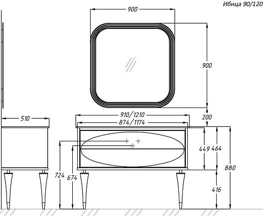 Комплектация: тумба, раковина, ножка (4 шт.).