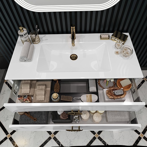 Тумба под раковину Ибица 120 подвесная белая/золото