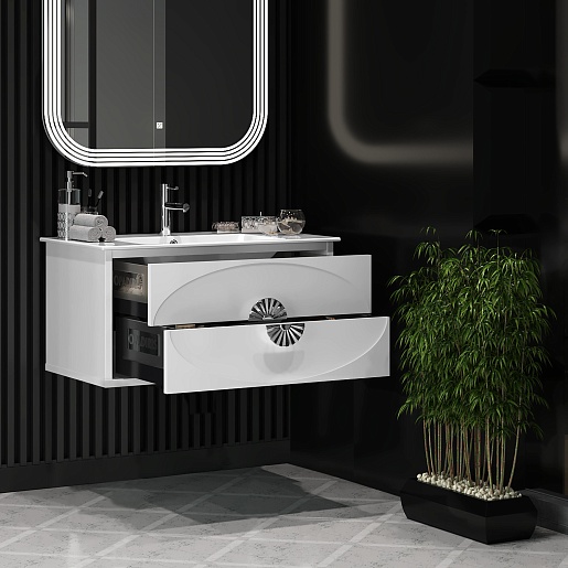 Тумба под раковину Ибица 90 подвесная белая/хром