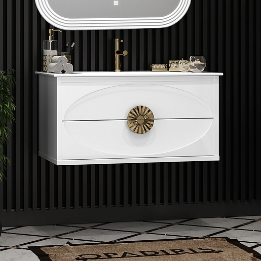Opadiris Тумба с раковиной Ибица 90 подвесная белая/золото