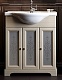 - Тумба под раковину напольная, массив бука, распашные фасады, декорированные вставками из стекла с узором.