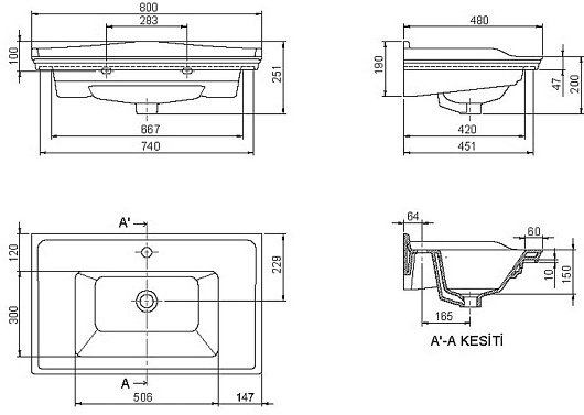 Умывальник мебельный Kapadokya 80