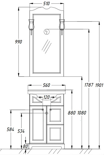 - Тумба под раковину напольная, массив бука, фурнитура-бронза.