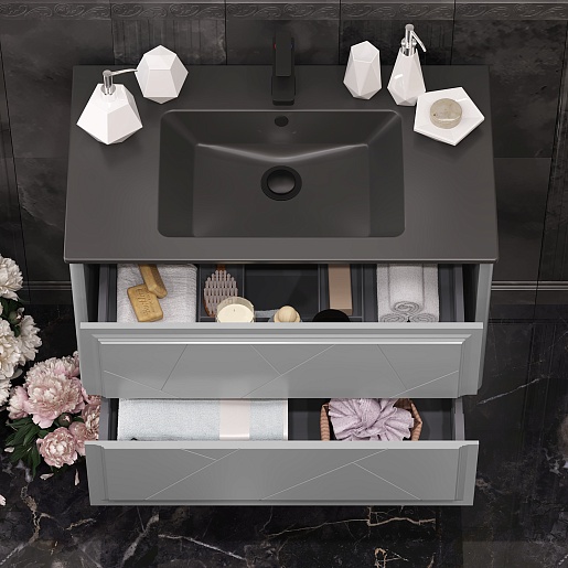 Opadiris Тумба с раковиной Луиджи 90 подвесная серая матовая/антрацит