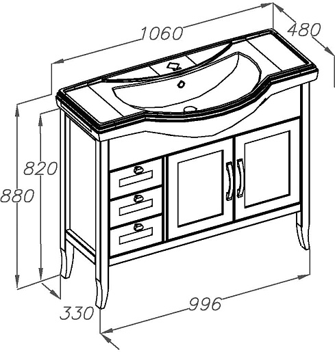 Opadiris Тумба с раковиной Мираж 100 слоновая кость