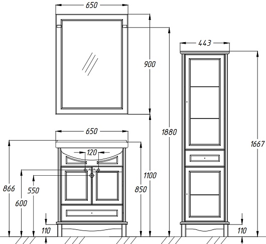 Тумба с раковиной Омега 65