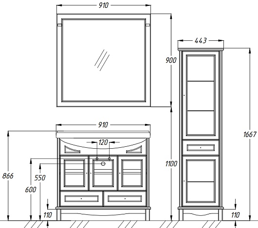 - Тумба под раковину напольная, массив бука, распашные фасады, механизм доводчика.