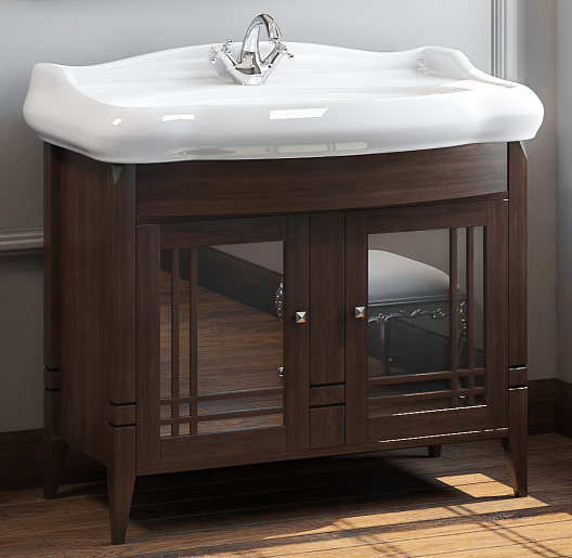 - Тумба под раковину напольная, массив бука, распашные фасады с вставкой из стекла.