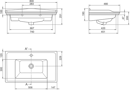 Умывальник мебельный Opadiris CeraStyle Kapadokya 80 - арт. 036300-u-01.
