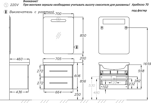 В комплекте: зеркало, комплект креплений.
