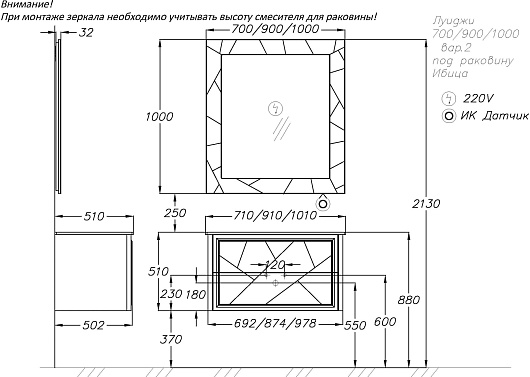 Opadiris Зеркало для ванной Луиджи 90 белое матовое