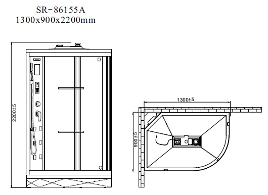 - стекла примыкающие к стенам цвет "Smoky white", остальные прозрачные, толщина 6 мм.