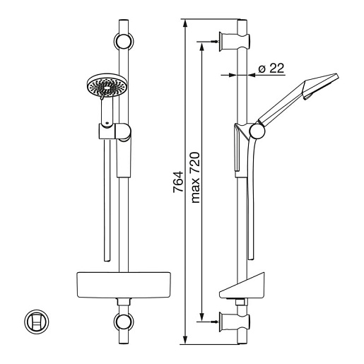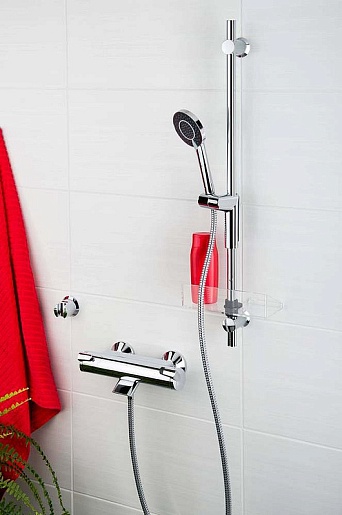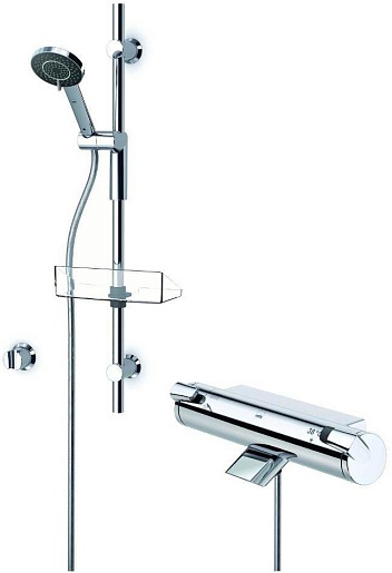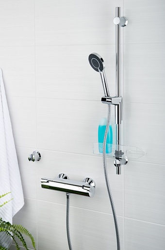 - душевой шланг, душевая лейка, дивертор, настенный держатель, эксцентрики, аэратор, держатель для душевой лейки