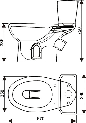Напольный унитаз-компакт Оскольская керамика Элисса стандарт - арт. 43301110302 / 424794.