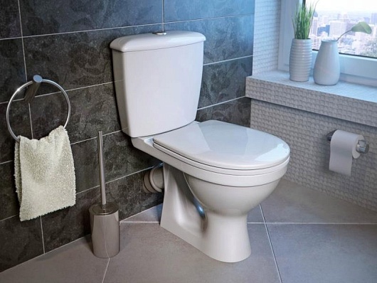 - Установка сливного бачка поверх унитаза.