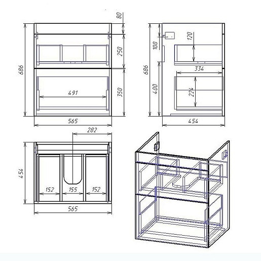 - Тумба под раковину Sjel stor 65 с выдвижными фасадами.