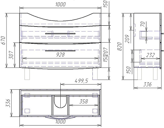 - Тумба под раковину Vessla stor 105 с выдвижными фасадами.