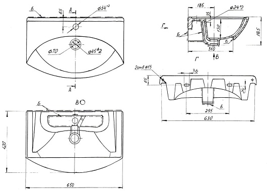 Тумба с раковиной OWL 1975 Vessla stor 65 - арт. OW22.11.00 / 192529.