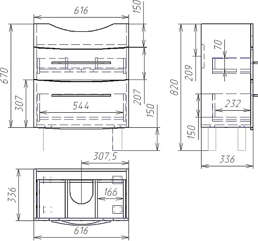 - Тумба под раковину Vessla stor 65 с выдвижными фасадами.