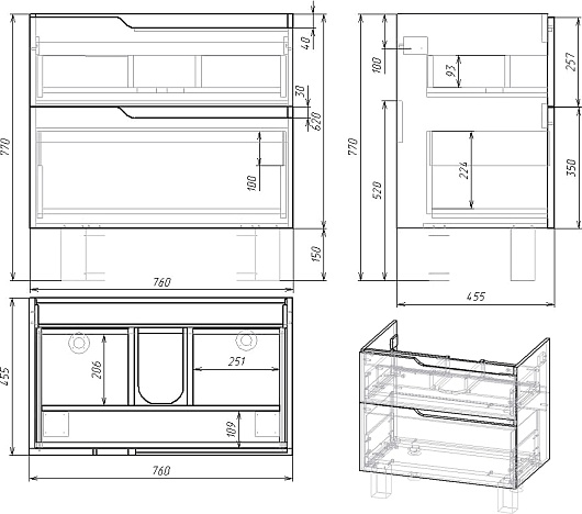 - Тумба под раковину Hella stor 80 с выдвижными фасадами.