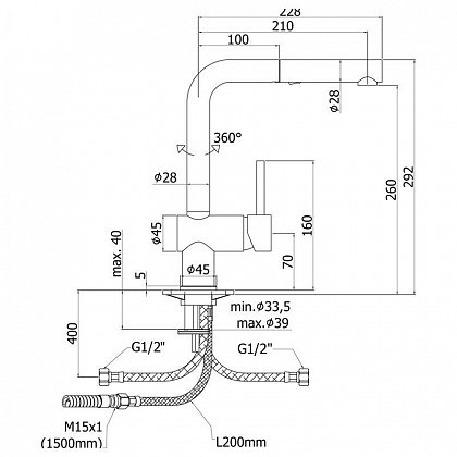 - Монтаж на одно отверстие