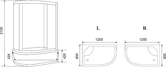 - Глубина поддона: 325 мм.