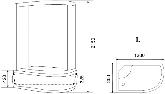 - Глубина поддона: 325 мм.