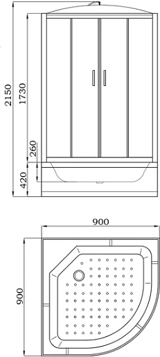 - Размер: 90х90х215 см.