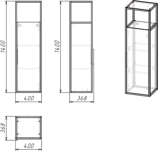 - 1 распашная дверка, 1 открытая ниша сверху.