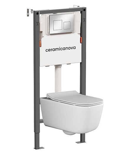 Ceramicanova Подвесной унитаз New Day Rimless с системой инсталляции Balance кнопка Square хром глянцевый