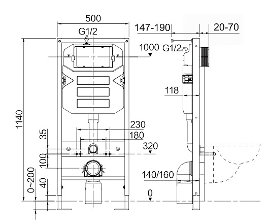 - Инсталляция Ceramicanova Envision CN1001W с клавишей смыва Round.