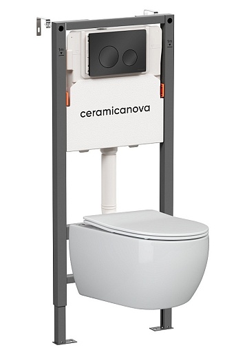 Ceramicanova Подвесной унитаз Play Rimless с системой инсталляции Balance кнопка Circle черный матовый