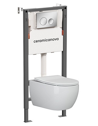 Ceramicanova Подвесной унитаз Play Rimless с системой инсталляции Balance кнопка Circle хром глянцевый