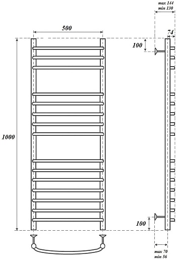 Комплектация: полотенцесушитель, телескопическое крепление к стене (4 шт.), ТЭН с терморегулятором.