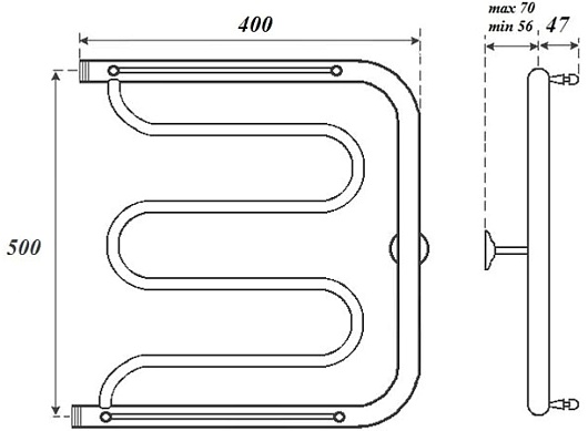 Полотенцесушитель водяной Point Фокстрот 500x400 PN25554P хром.