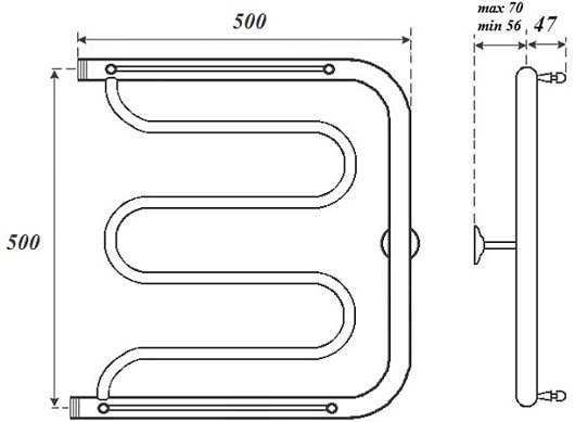 Полотенцесушитель водяной Point Фокстрот 500x500 PN25555P хром.