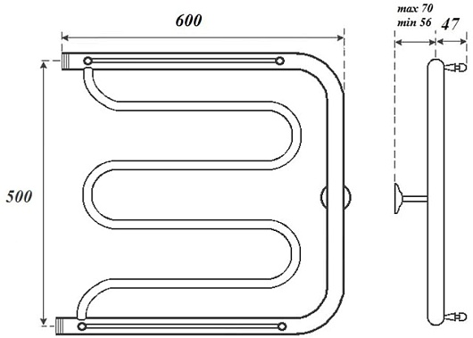 Комплектация: полотенцесушитель, кронштейн для крепления (1 шт.).