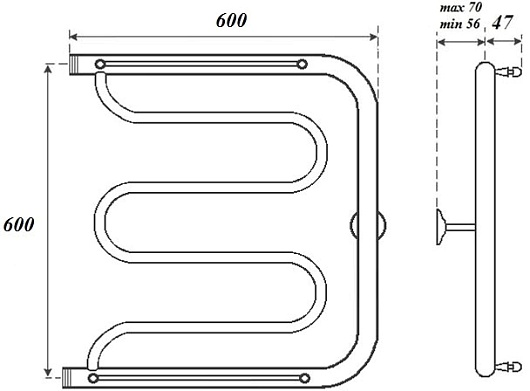 Комплектация: полотенцесушитель, кронштейн для крепления (1 шт.).