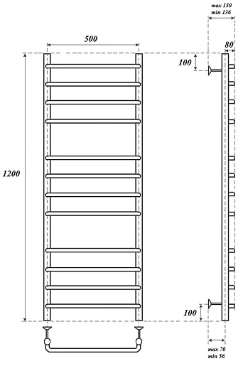 Комплектация: полотенцесушитель, телескопическое крепление к стене (4 шт.), кран Маевского.