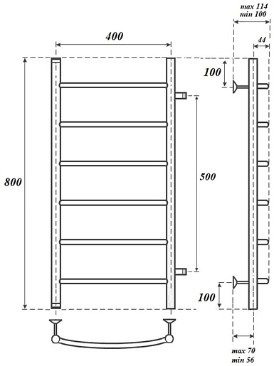 Комплектация: полотенцесушитель, телескопическое крепление к стене (4 шт.), кран Маевского.