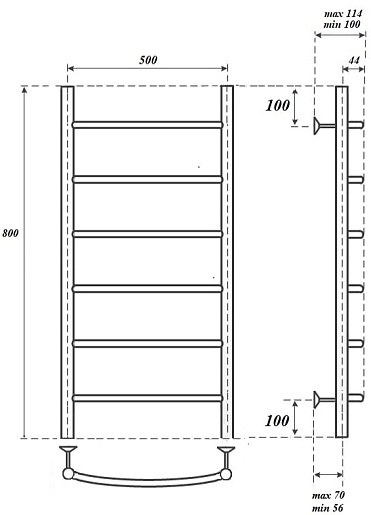 Комплектация: полотенцесушитель, телескопическое крепление к стене (4 шт.), кран Маевского.