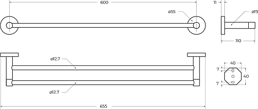 Cezares Полотенцедержатель двойной Relax RELAX-THD-65-NOP черный матовый