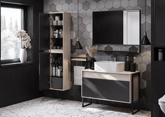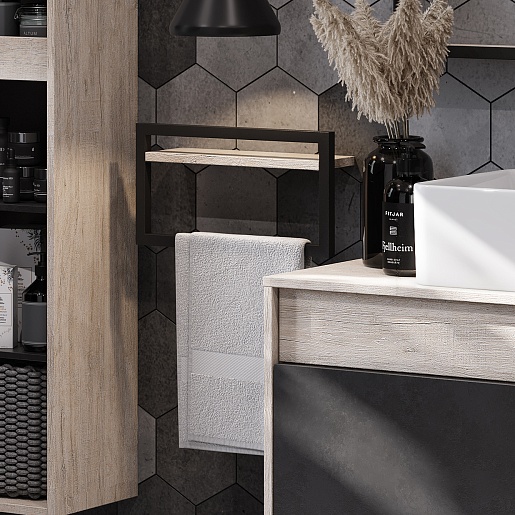 Акватон Полотенцедержатель Лофт Урбан 40 с полкой черный/дуб орегон