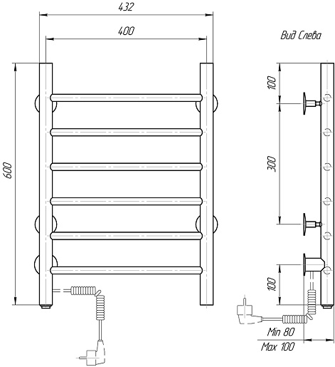 Комплектация: полотенцесушитель, кронштейн (4 шт.), комплект для скрытого подключения, провод с вилкой.
