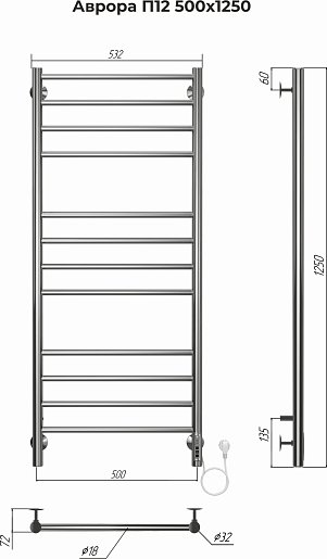 Полотенцесушитель электрический Terminus Аврора П12 500x1250 - арт. 4670078544377.