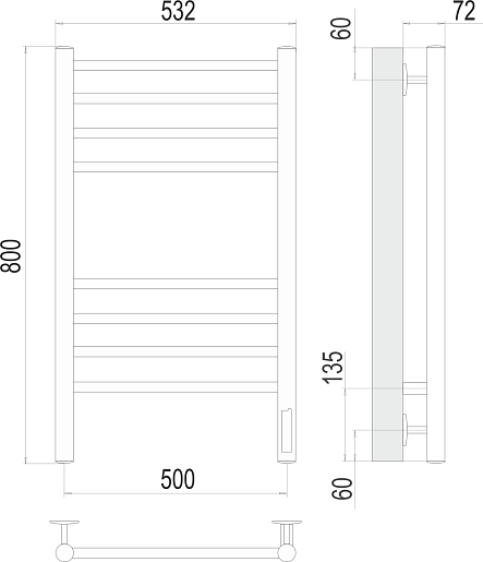 Полотенцесушитель электрический Terminus Аврора П6 500x800 - арт. 4670078527493.