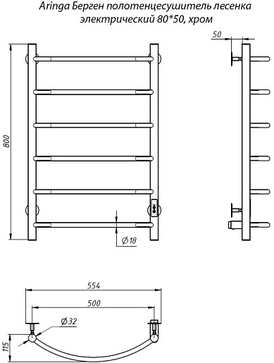Полотенцесушитель электрический Aringa Берген 50x80 AR03008CH хром.
