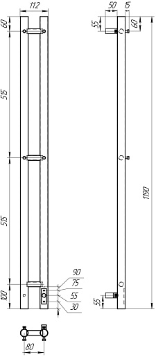 Полотенцесушитель электрический Point Деметра П3 80x1200 PN12812 хром.