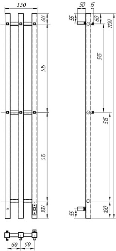 Комплектация: полотенцесушитель, крепление к стене, сетевой кабель.