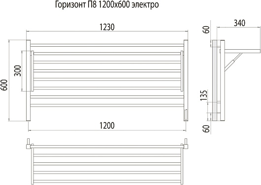 Полотенцесушитель электрический Terminus Горизонт П8 1200x600 - арт. 4670078543332.